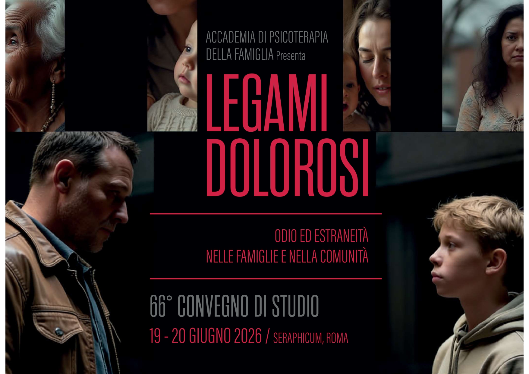 In queste due giornate si discuterà di legami dolorosi, dove odio e estraneità nelle famiglie e nella società sono divenuti fenomeni inquietanti in un periodo storico drammatico per l’intera umanità attraversato da guerre, ingiustizia e oppressione sociale, migrazioni forzate, odio, fake news, e da un uso molto preoccupante dei media soprattutto tra i giovani.